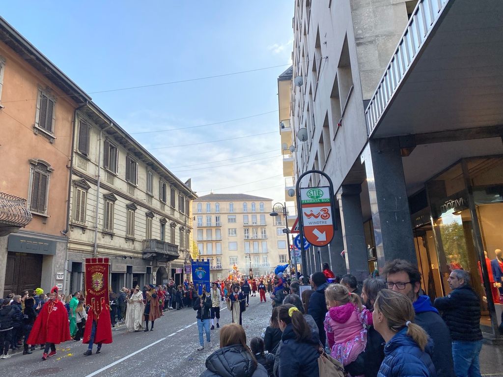 Motivo per cui sono arrivate maschere da diverse parti d’Italia, che prima della sfilata hanno pranzato all’oratorio San Luigi insieme alla vicesindaco, nonché assessore alla Cultura, all’Identità e allo Sviluppo Economico, Manuela Maffioli, l’assessore alle Politiche Educative Daniela Cerana e l’assessore alla Sicurezza e Mobilità Salvatore Loschiavo. Un pranzo a base, ovviamente di polenta e Bruscitti offerto dal Magistero dei Bruscitti che ha poi consegnato a tutti la ricetta ufficiale.