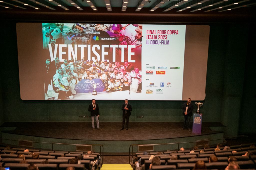 E dopo la visione di Ventisette, ecco le parole del sindaco di Varese Davide Galimberti, del presidente Carlo Bino, del ds Matteo Malfatti, di Andrea Vanetti e di Alessio Piroso, nonché di Claudio Pucci, presidente del consiglio di amministrazione del Centro Polispecialistico Beccaria, al cui indispensabile contributo - insieme a quello di GiocaBetTV, Coop Lombardia, Acinque, EuroBazar, il patrocinio di Varese Sport Commission for Milano-Cortina 2026 e la collaborazione di AIHG, OneTV, Radio Village Network e MIV - si deve la realizzazione del documentario.
