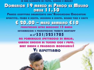L’appuntamento, dunque, è per le 11.30 di domenica 19 marzo al parco Ex Mulino in Valle, che per tutta la giornata ospiterà la festa tra cibo, spettacoli di magia e animazione per i più piccoli.