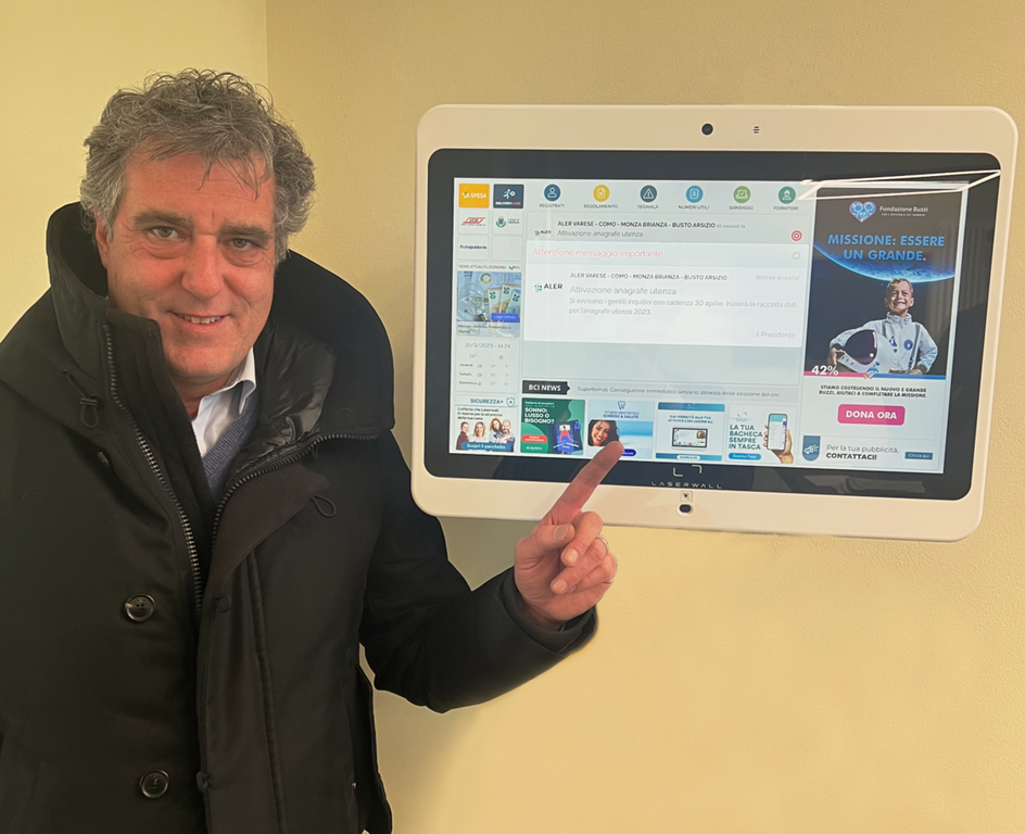 “Con le bacheche interattive Aler Varese Como Monza Brianza Busto Arsizio, potrà comunicare in maniera puntuale, diretta e veloce con gli inquilini, per dare informazioni e scadenze utili, come per esempio, anagrafe periodica utenza o richieste di Contributi di Solidarietà Regionali, e per ricevere segnalazioni manutentive in maniera tempestiva”.