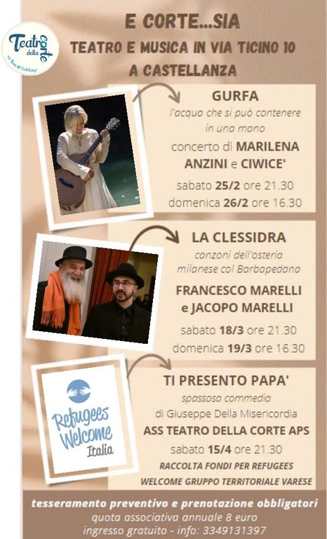 La rassegna Teatro e Musica si concluderà sabato 15 aprile alle 21.30, quando il Gruppo Teatrale dell’Associazione, replicherà la divertente commedia di Giuseppe della Misericordia “Ti presento papà” con lo scopo di raccogliere fondi per l’Associazione Refugees Welcome, gruppo territoriale di Varese, che promuove l’inclusione sociale di rifugiati e migranti attraverso una serie di attività.