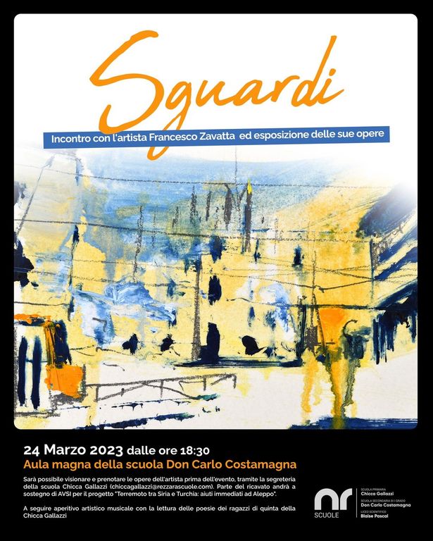 Al termine della settimana, Venerdì 24 marzo, insieme a Zavatta, i ragazzi saranno protagonisti in una serata dedicata alle loro creazioni poetiche ed artistiche. Durante questa occasione, l’artista metterà a disposizione alcune sue opere che potranno essere prenotate e acquistate, devolvendo parte del ricavato ad AVSI per il progetto “Terremoto tra Siria e Turchia: aiuti immediati ad Aleppo”.