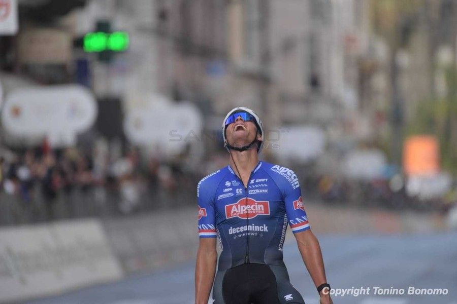 L'olandese è arrivato in solitaria sul traguardo dopo un'azione spettacolare sul Poggio, una fuga che gli è poi valsa la sfilata in solitaria in via Roma.