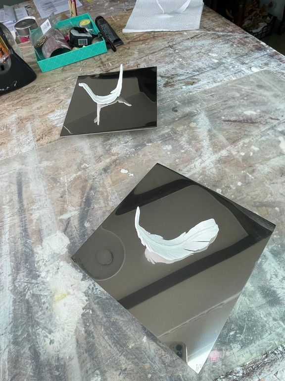 Da tutti questi pensieri è nata l’idea: «Una piuma, un segno di queste persone che ci hanno lasciato fisicamente, che se ne sono andate in un’altra dimensione lasciando un segno tangibile, come se se ne fossero appena andate: è una piuma che è come se fosse appena caduta, che si sta per appoggiare».