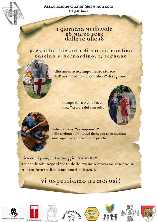 La storia della Cascina San Bernardino sarà raccontata e vissuta nella “prima giornata medievale”. Si tratta del primo appuntamento organizzato dall’associazione Quatar Ges e non solo previsto per domenica 26 marzo dalle 10.00 alle 18.00. Una giornata per raccontare non solo le tradizioni del quartiere ma anche un’occasione per vivere momenti di condivisione e socializzazione.