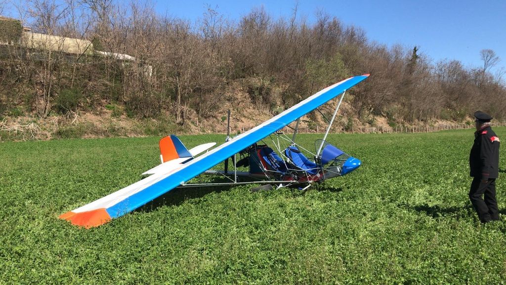 FOTO. Ultraleggero in difficoltà precipita nei boschi di Gaggiolo, paura per il pilota