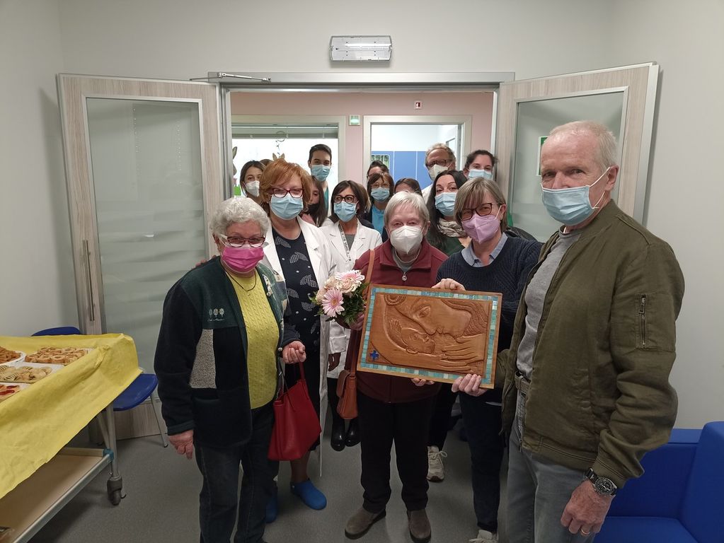 Questa occasione serve come un toccante promemoria delle sue eccezionali qualità. Molte pazienti, tra cui la signora Rosanna, moglie dell'artista che ci dona questo bassorilievo, ricordano a distanza di tempo la sua capacità di entrare in empatia con loro. Il personale che lavora nel punto nascita di Tradate cerca di seguire il suo esempio e siamo orgogliosi che, contrariamente alla tendenza nazionale del calo dei tassi di natalità, c'è stato un costante aumento (15%) del numero di donne che hanno scelto di partorire qui, fiduciose di ricevere le cure di cui hanno bisogno. La qualità dell'assistenza prestata si riflette anche nel basso tasso di parti cesarei, che è tra i più esemplari in Italia».