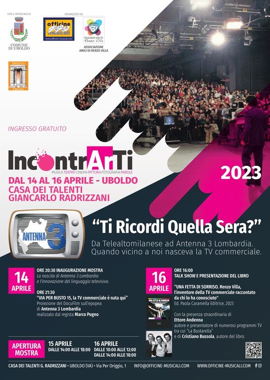 Questa seconda edizione di “IncontrArTi”, si aprirà con un grande tributo alla genesi della TV commerciale italiana, fenomeno imprenditoriale e di cultura popolare “germogliato” proprio nel nostro territorio “a cavallo” tra Varese e Milano.
