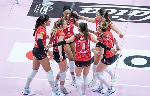 Prosecco Doc Imoco Conegliano: 1 Carraro, 2 Plummer, 3 Robinson-Cook, 4 Squarcini, 5 De Kruijf, 6 Gennari, 8 Gray, 9 Lubian, 10 De Gennaro (L), 11 Haak, 12 Pericati (L), 14 Wolosz, 19 Fahr. All. Santarelli, 2° Lionetti.