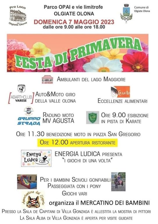 La Pro Loco olgiatese ha deciso di celebrare in grande l’arrivo della bella stagione, e lo ha fatto organizzando la Festa di Primavera, che animerà le vie del centro cittadino per tutta la giornata di domenica 7 maggio.