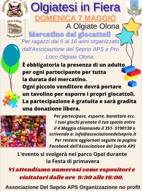 A partire dalle 9 di domenica, poi, la festa entrerà nel vivo e il parco Opai e le strade limitrofe ospiteranno numerose attrazioni ed iniziative rivolte ai piccoli di Olgiate e alle loro famiglie; avvicinandosi al parco di Villa Gonzaga provenendo dal municipio, infatti, sarà possibile passeggiare tra le bancarelle degli Ambulanti del Lago Maggiore e quelle delle Eccellenze Alimentari, in un vero e proprio mercato a cielo aperto.