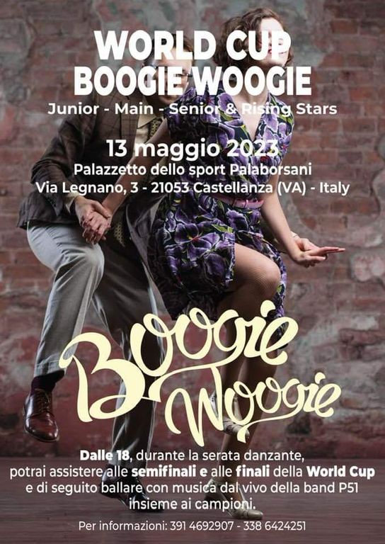 Ancora una volta sabato 13 maggio, in occasione della tappa italiana della World Cup Boogie Woogie, il PalaBorsani di Castellanza diventerà il palcoscenico su cui si esibiranno gli atleti di specialità più bravi del mondo.