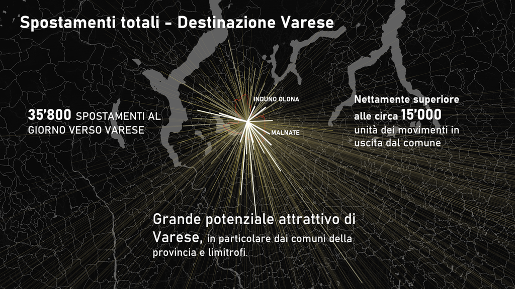 Tanto più che altri studi recenti mostrano come l’attenzione verso il pendolarismo con Milano debba essere almeno contemperata da un identico interesse per chi entra e si sposta a Varese come a Como, Lecco o Lugano: «Persone che sono la maggioranza: gli spostamenti verso e all’interno di Varese sono 35.800 al giorno, nettamente di più dei 15mila in uscita dalla città, sempre per motivi di lavoro o studio».