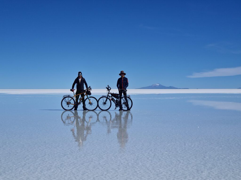 E non solo. I due amici non si sono accontentati di scalare montagne giungendo a quasi 6mila metri con vento gelido a 70 km orari, ma hanno visitato geyseres, lagune emozionanti, sono venuti a tu per tu con persone della Nuova Zelanda che stavano facendo il giro del mondo da sei mesi, conosciuto popolazioni indigene. Entrambi 48 anni, hanno suscitato l’invidia di chi passava in jeep accanto a loro che stavano pedalando lungo il deserto di sale.