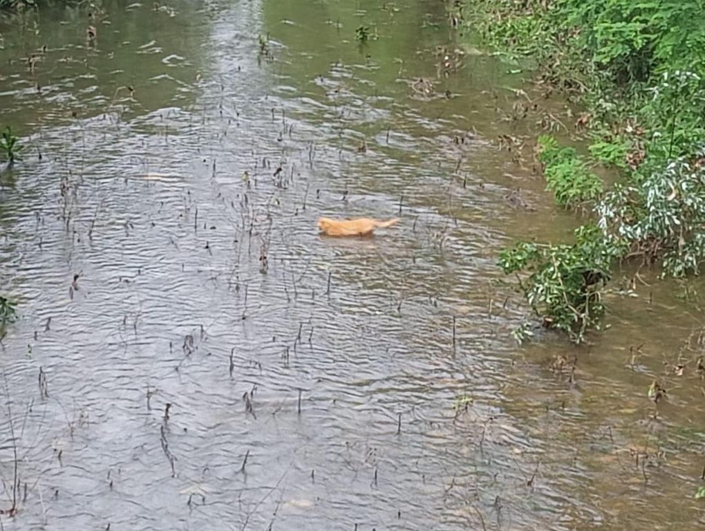 I gatti detestano l'acqua, è la convinzione diffusa. C'è però un bel micione che in queste ore di pioggia si è fatto una passeggiata, se non proprio una nuotata, nell'Arnetta. Sembra avanzare con circospezione, non con timore.