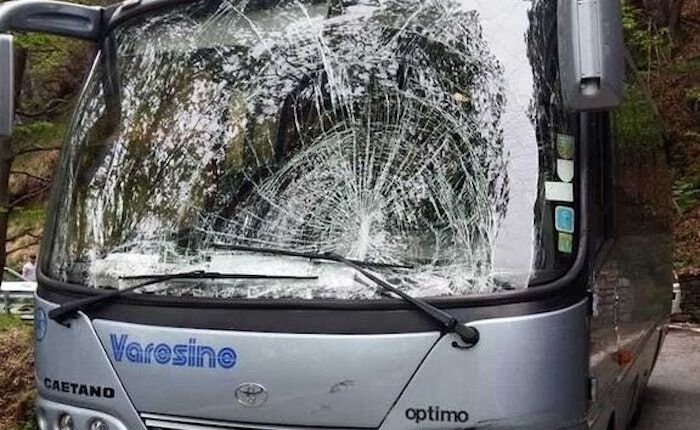 Ciclista finisce contro il parabrezza di uno scuolabus sulla provinciale a Maccagno: grave un 36enne
