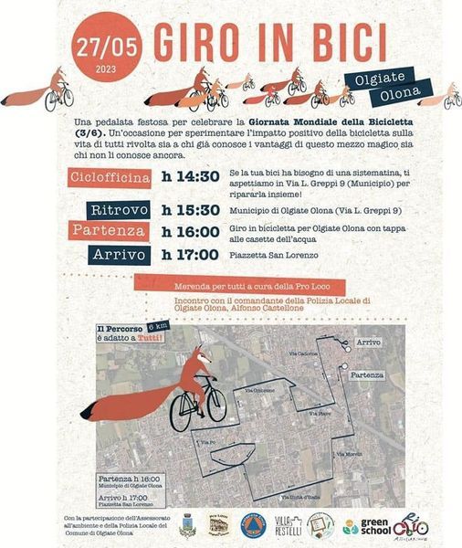 Torna anche quest’anno l’appuntamento con il Giro in bici per le vie di Olgiate, organizzato dal comune in collaborazione con altre realtà del territorio per permettere a chi abita in paese di riscoprirne la bellezza e per ricordare quanto sia piacevole percorrere le sue strade su due ruote.