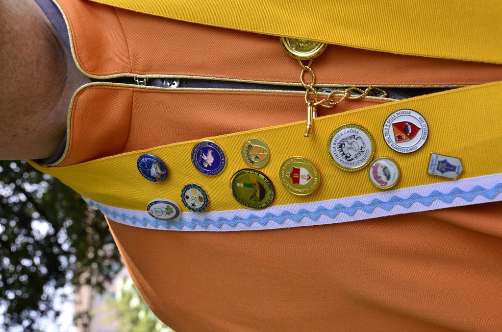 Tra i soci fondatori della Confraternita del Ris in Cagnun c’è anche il dottor Angelo Carabelli, dermatologo e da oltre 40 anni animatore della Stagione musicale di Villa Cagnola a Gazzada. Sul cordone giallo che orna il mantello arancione dei “confratelli” spiccano le medaglie di altre associazioni: «Ognuna ha la sua e quando si organizzano i convivi ce le scambiamo», spiega, mentre disserta con un altro ammantellato sulle caratteristiche della Costina di Coarezza, prelibatezza della zona di Somma Lombardo.