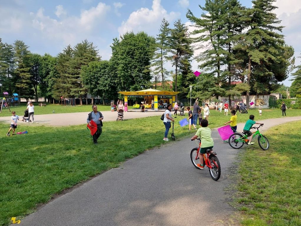 Per tutto il pomeriggio, o almeno sino all’arrivo della pioggia, il cielo sopra il Parco Carducci è stato pieno di piccole macchie di colore, collegate grazie ad un sottile filo alle mani felici dei giovani olgiatesi che, spesso per la prima volta, si sono cimentati con questo meraviglioso gioco.