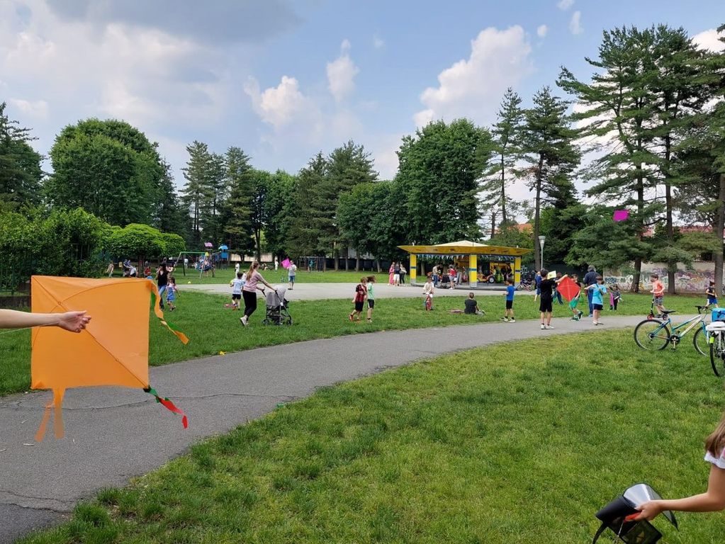 Osservando le famiglie al parco, poi, è stato chiaro sin da subito come questo gioco rappresenti anche un momento di legame tra i bimbi e i loro genitori e nonni, che nella maggior parte dei casi hanno trascorso il pomeriggio a fianco dei piccoli per spronarli ed insegnare loro come far volare sempre più in alto un aquilone.