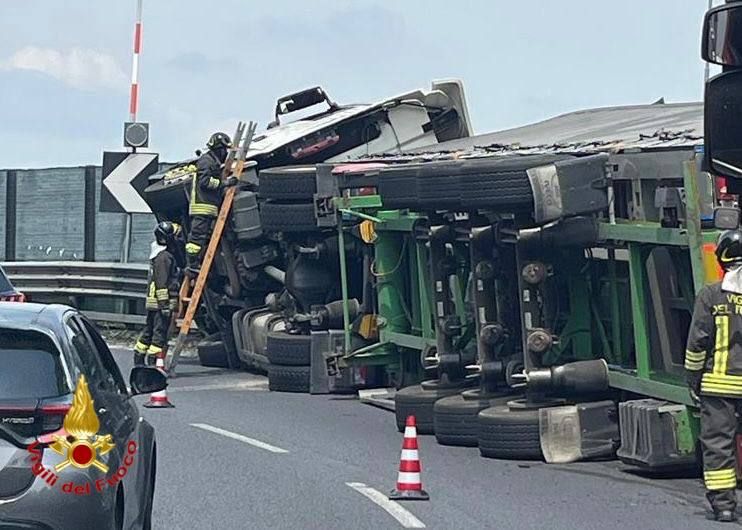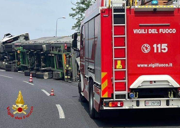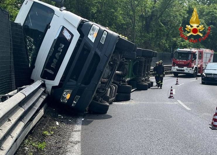 Mezzo pesante si ribalta allo svincolo di Busto: un ferito e coda in Autolaghi