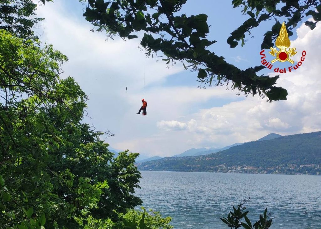 VIDEO E FOTO. Recuperato dai sommozzatori il cadavere rinvenuto nel pomeriggio sul fondo del lago Maggiore a Castelveccana