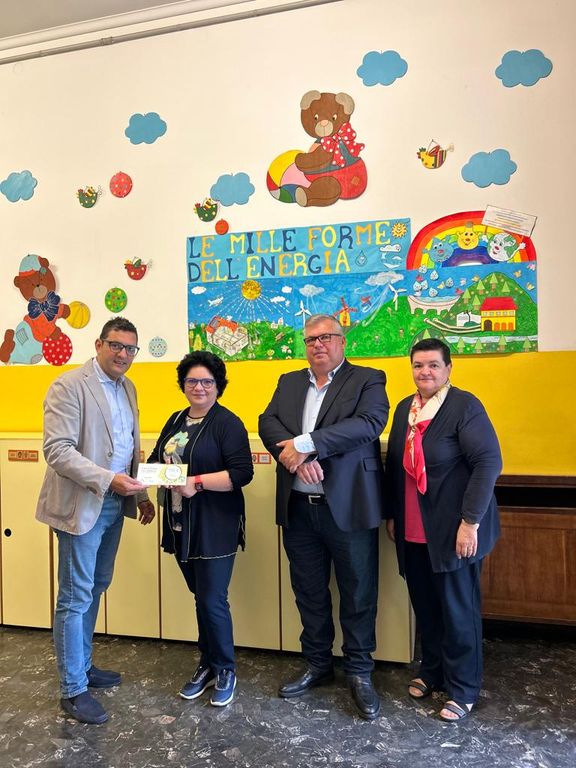 Oggi, 5 giugno, alla presenza dell’Amministratore Unico di Agesp Energia Francesco Attolini, del Direttore Generale del Gruppo Agesp Gianfranco Carraro, del Dirigente Scolastico dell’Istituto Comprensivo “E. Crespi” Armida Truppi e del Dsga del medesimo istituto Letizia Luzi, è stato consegnato ai bambini più grandi della Scuola dell’Infanzia di Villa Sioli il primo premio del concorso “Le mille forme dell’energia”.