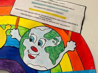 Le insegnati di Villa Sioli, dopo aver mostrato ai bambini un video intitolato: “La fantastica storia delle energie rinnovabili” che ha come protagonisti “Magoutte” (la gocciolina d'acqua), “Tourbillon” (il vento) e “Petit Soleil” (il sole), e, che spiegava in modo accattivante come potevano essere utilizzate le energie, hanno fatto scegliere ai bambini una delle energie rinnovabili da illustrare su un cartellone, utilizzando vari materiali e diverse tecniche proprio per consentire ai più piccini di dare il proprio contributo alla realizzazione del cartellone: ecco il risultato vincente, nelle foto.