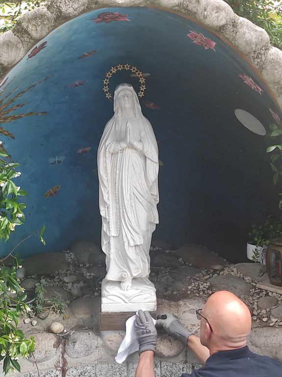 Ecco quindi che il Cappellano del Sant’Antonio Abate, don Andrea, si è subito attivato per riportare la Madonnina allo splendore iniziale, affidando l’opera di restauro al professor Angelo De Natale, pittore, scultore e docente (per oltre 40 anni) di storia dell’arte, che se ne è occupato a titolo completamente gratuito.