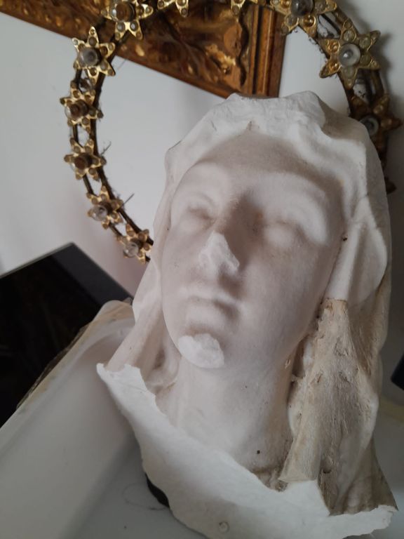 A ciò ha fatto seguito il restauro, difficile e minuzioso, delle mani che si erano quasi disintegrate (le uniche parti ancora parzialmente intatte riguardavano i polsi): per sistemarle, il Prof. De Natale ha dovuto ricostruire del tutto le dita di marmo, le ha levigate e ricollocate sulla Madonnina.