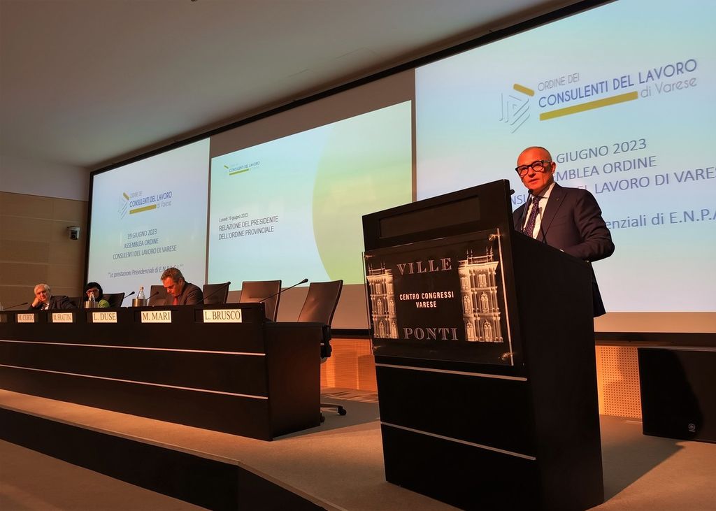 Per lui e per il suo ufficio di presidenza, composto dal segretario Luigi Duse e dal tesoriere Marisa Curto, quella di lunedì 19 giugno a Ville Ponti è stata la prima assemblea alla guida dell’Ordine dei Consulenti del Lavoro. Un’occasione per presentare agli iscritti le priorità su cui la squadra ha deciso di lavorare nei prossimi anni per promuovere e agevolare la figura del Consulente del lavoro come punto di riferimento per le aziende, per i lavoratori e per tutte le figure che a vario titolo interagiscono con il tessuto economico locale.