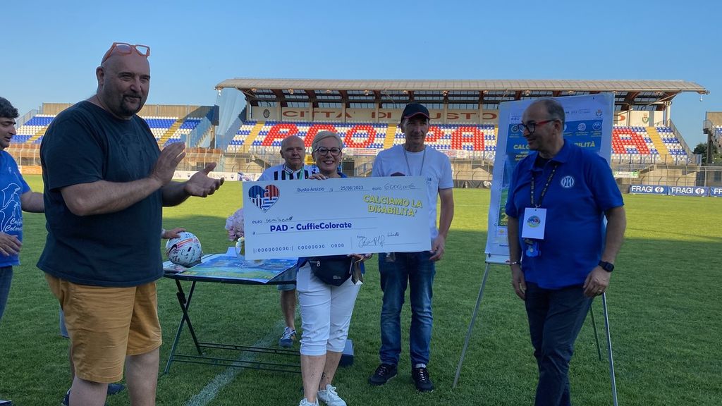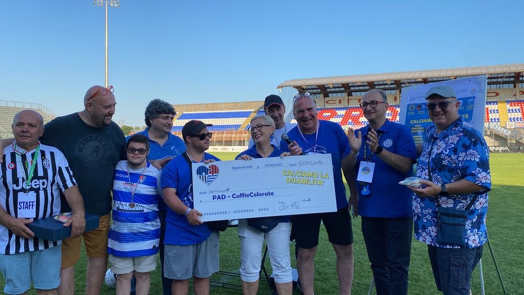 Chi vince? Tutti anzi le Cuffie colorate, amiche di tutti. Si respira fin dalle prime battute di “Calciamo la disabilità”. La presidente dell’Inter Club Betty Borroni chiama la mascotte della Pro, Tigrotto 1919, e ricorda i bei tempi in cui sia i tifosi nerazzurri sia gli juventini avevano sede nella “vecchia” piazza Vittorio Emanuele. Il leader del Milan Club Antonello Castiglioni ribadisce: non conta chi arriverà primo oggi.