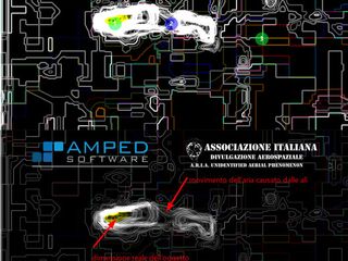 "È risaputo che a Genova, specialmente nelle zone circostanti l'aeroporto, sono presenti numerosi gabbiani. L'analisi condotta dall'A.R.I.A., utilizzando il programma forense di analisi chiamato AMPED, ha confermato senza ombra di dubbio che l'oggetto avvistato è di dimensioni ridotte (contrassegnato dal numero 1) e presenta una scia di movimento (numero 2) che, come evidenziato nella diapositiva, non è consistente, solida o compatta, non potendo quindi essere associata a un oggetto reale".