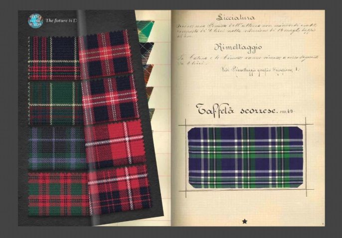 Oltre a esporre alcuni pannelli sulla storia del Museo e immagini tratte delle sue collezioni, sono stati ricostruiti al Cad alcuni tessuti dei campionari storici, per poi essere applicati come rendering sui capi di abbigliamento.
