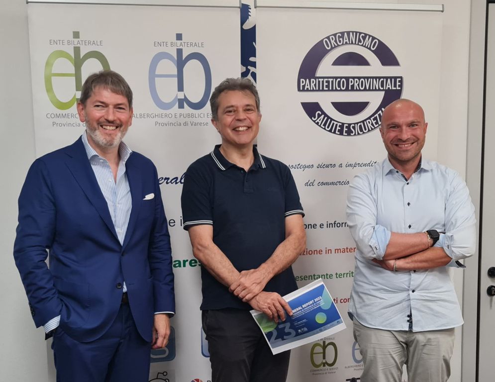 Presenti Alessandro Minello (Università Ca' Foscari Venezia), Alessandro Castiglioni (presidente Enti Bilaterali Turismo Provincia di Varese) e Giuseppe D'Aquaro (presidente Ente Bilaterale Commercio Provincia di Varese).
