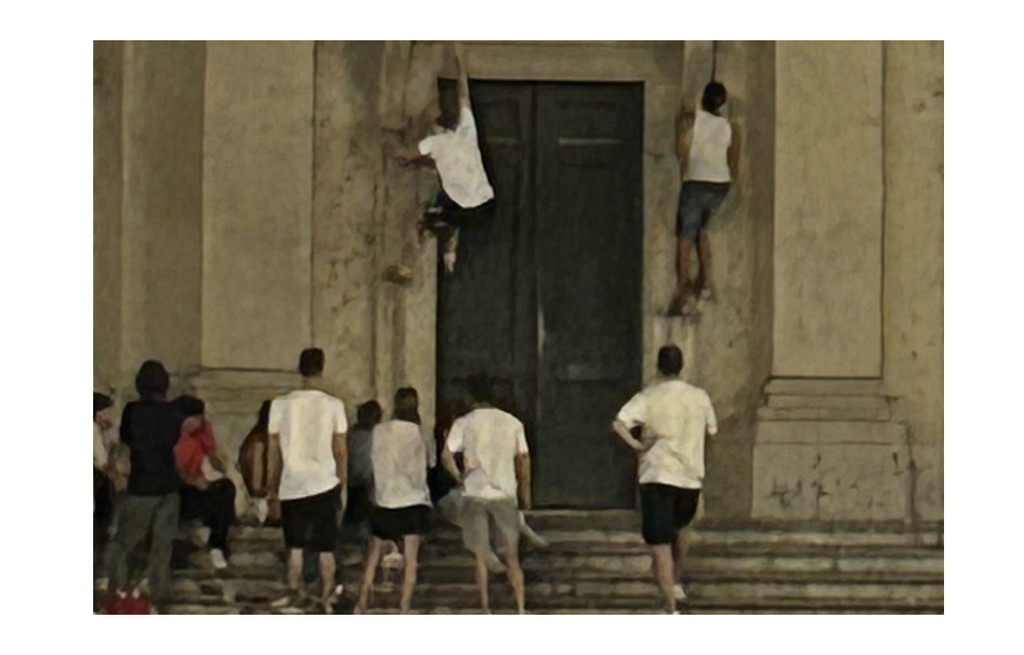 Saronno, arrampicata a mezzanotte sulla facciata della Prepositurale