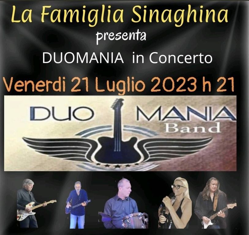 Duomania Band presenterà al pubblico cover di pezzi di successo degli anni 70/80/90 sia pop che rock. La band, composta da cinque elementi, si esibirà dal vivo in un crescendo che passerà da momenti più intimi (chitarra e voce) a momenti più rock e scatenati.