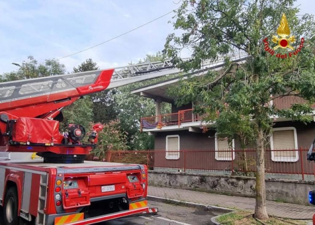 FOTO - A fuoco un edificio a Caronno Pertusella