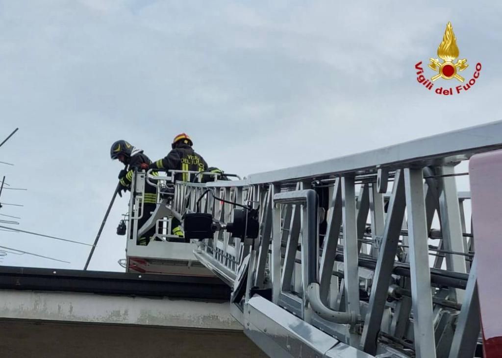 Vigili del fuoco in azione questo pomeriggio in via Roma per il rogo sviluppatosi alla copertura di un edificio. Operazioni ancora in corso