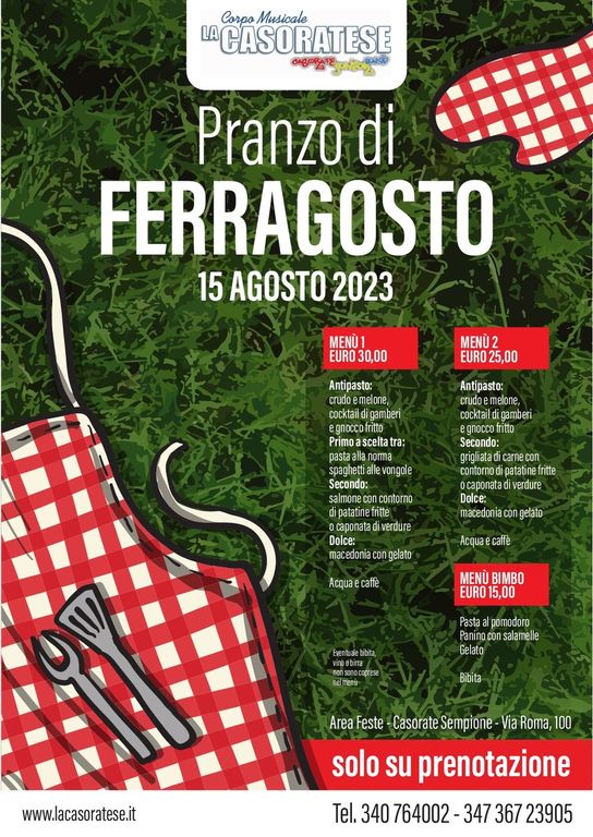 Il Ferragosto de “La Casoratese” è all'Area Feste di via Roma a Casorate Sempione. Il ricavato sarà utilizzato per le numerose attività del corpo musicale.