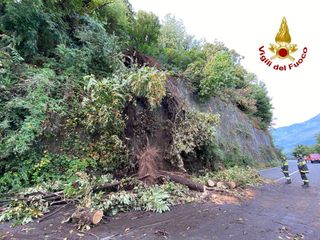 Sul posto i vigili del fuoco che hanno tagliato le piante e che stanno mettendo in sicurezza l'area: sul luogo dello smottamento anche il sindaco Passera e i tecnici Anas. Saranno necessarie delle opere di disgaggio, oltre alla rimozione di alcuni alberi