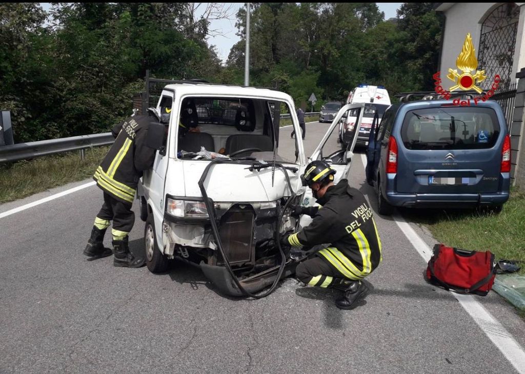 Ambulanza e vigili del fuoco in azione questo pomeriggio all'altezza di via Verdi. Coinvolti una macchina e un piccolo autocarro