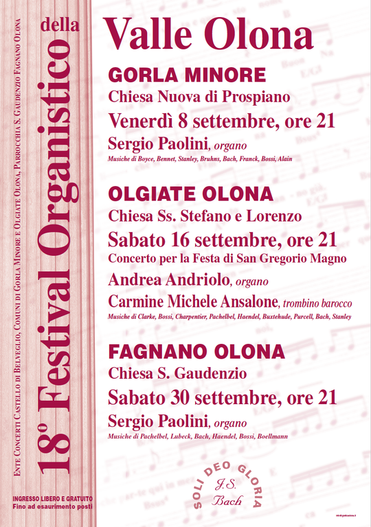 Mentre altrove questo appuntamento si è perso, qui a Gorla è stato riproposto tutti gli anni, e oggi ci troviamo a presentare la 18esima edizione del Festival Organistico della Valle Olona, che avrà inizio venerdì 8 settembre».