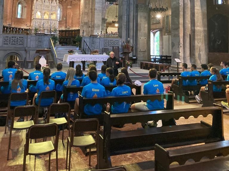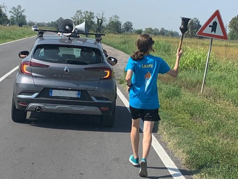 Siamo partiti con la fiaccola dalla tomba di Sant'Agostino, che si trova all’interno della Basilica di San Pietro in Ciel d'Oro a Pavia, e durante la giornata ognuno di loro ha percorso un pezzo di strada per portare la fiamma fino a qui.