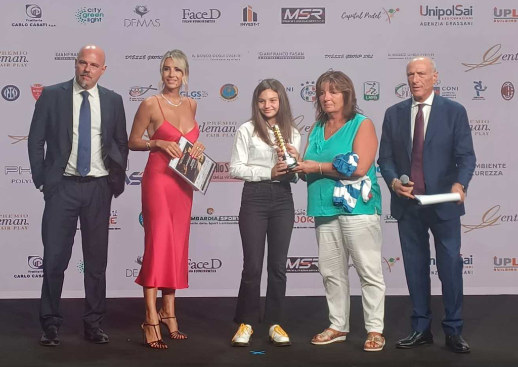 Il motivo? La Lega Pro ha voluto premiare la ragazza che dopo essersi infortunata sul campo, è stata portata al Pronto Soccorso. Qui, come noto, i medici volevano tagliarle la maglia ma lei si è opposta. È stata la presidente Patrizia Testa a consegnare il Premio Gentleman Lega Pro.