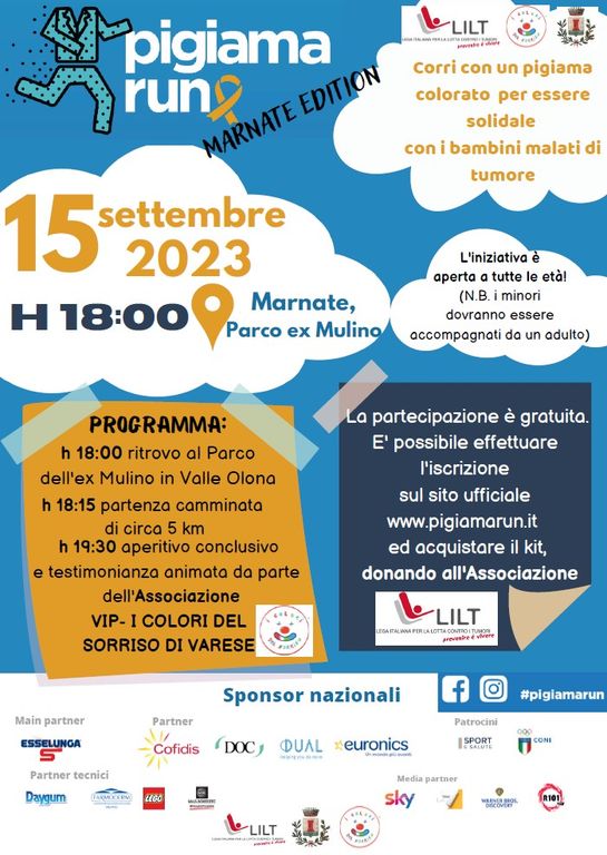 L’unica condizione imprescindibile per la partecipazione all’edizione di Marnate è quella di indossare un pigiama: «Nonostante si tratti di un’iniziativa all’apparenza goliardica e simpatica – precisa il sindaco Galli – il suo scopo è molto più profondo; la corsa si farà in pigiama, infatti, per darci modo di riflettere sulla vita di chi, come i bambini ricoverati in ospedale, è costretto a passare la maggior parte del proprio tempo indossandolo».