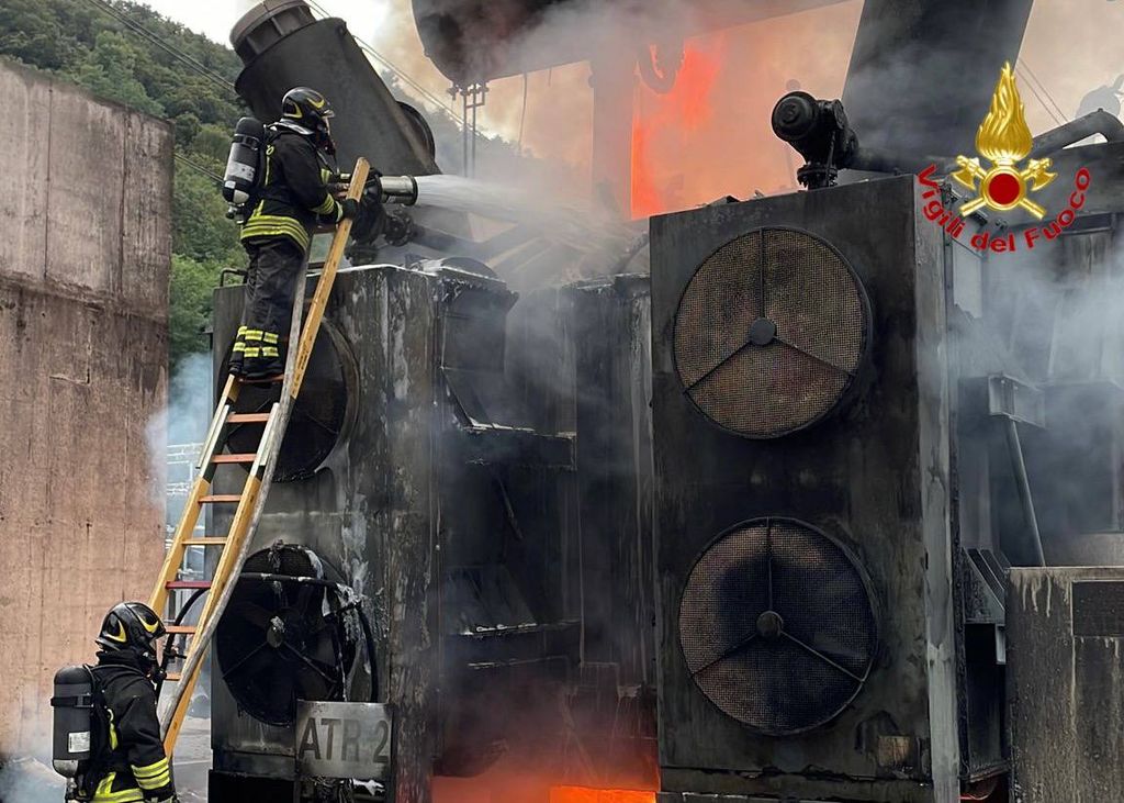 FOTO. Trasformatore con 6000 litri di olio in fiamme in una centrale di Cagno: vigili del fuoco al lavoro da stanotte