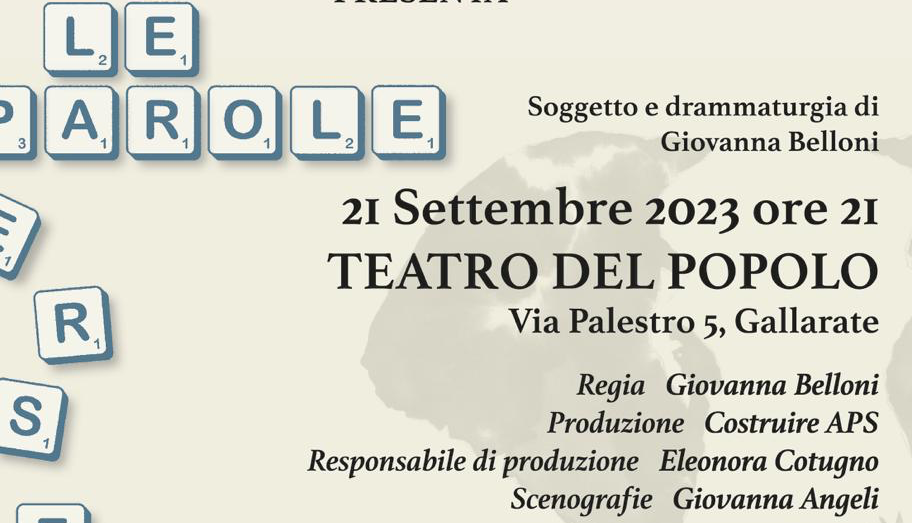 Appuntamento quindi giovedì 21 settembre alle ore 21 al Teatro del Popolo di Gallarate con lo spettacolo LE PAROLE PERSE, regia di Giovanna Belloni, attori Giovanna Belloni, Carlo Zerulo e Elisabetta Bruni.