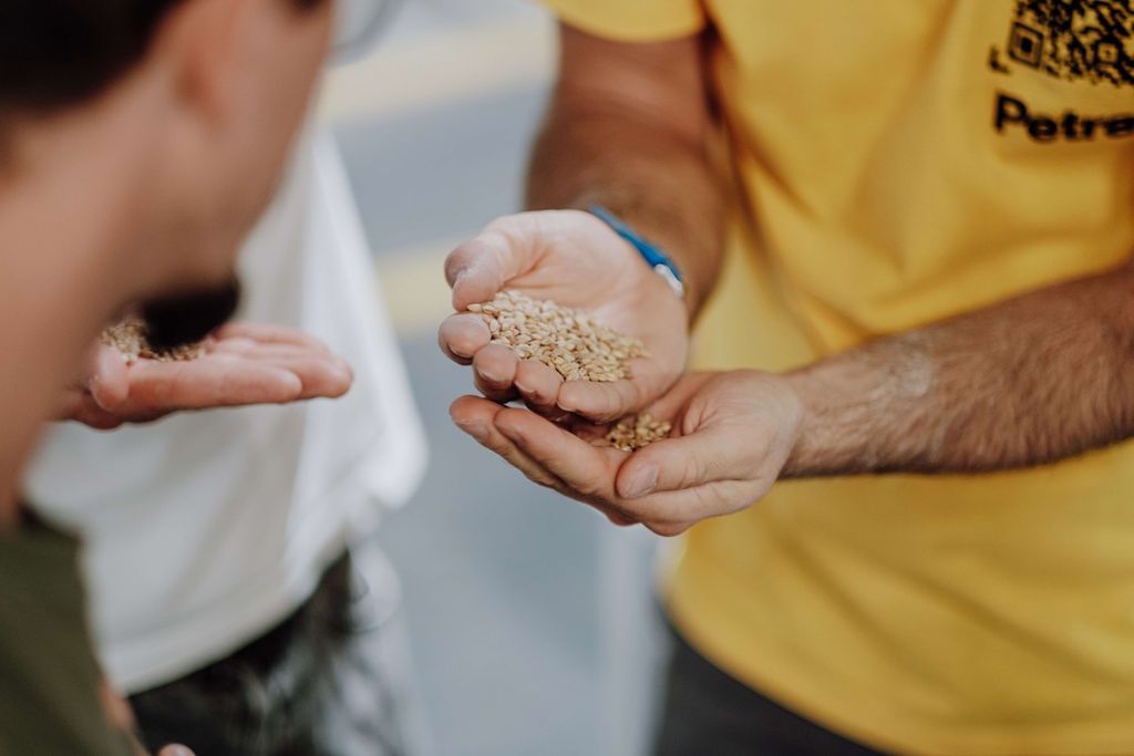 Gli “adottanti” possono toccare con mano le diverse fasi di sviluppo di una popolazione di grano tenero evolutivo: dalla semina alla raccolta, sino alla macinazione e alla trasformazione in farina Petra Evolutiva. Tutti i partecipanti si sono riuniti per assistere all’avvio della macinazione dei grani adottati, il cui sacco di farina porterà nome, cognome, insegna della pizzeria, annata - in questo caso quella del 2023 - e coordinate geografiche del campo di origine.