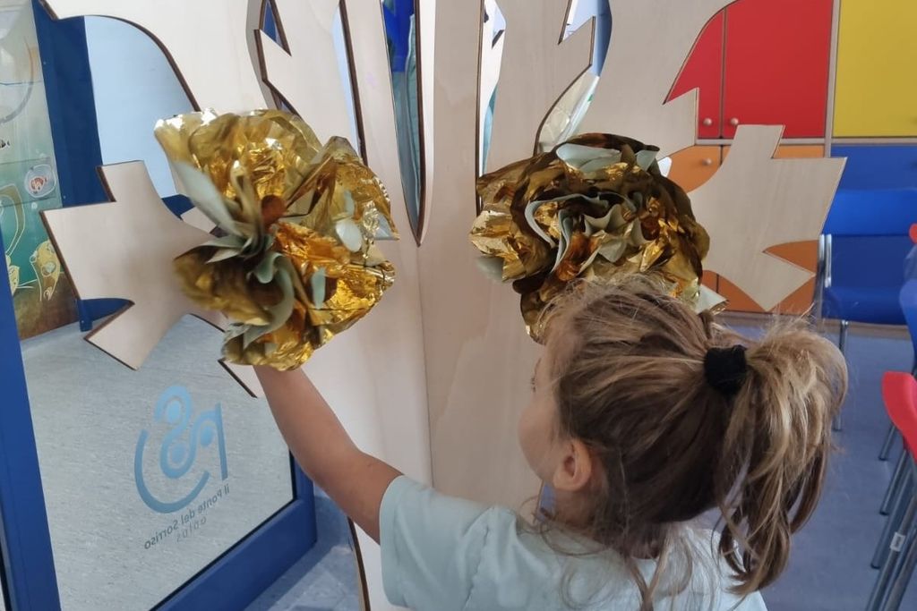 Bambini ricoverati e genitori sono stati coinvolti nei laboratori creativi per realizzare le decorazioni dorate. A tutti, personale sanitario compreso, è stato applicato il tatuaggio nastrino dorato, simbolo dell’iniziativa alla quale Il Ponte del Sorriso aderisce ogni anno.